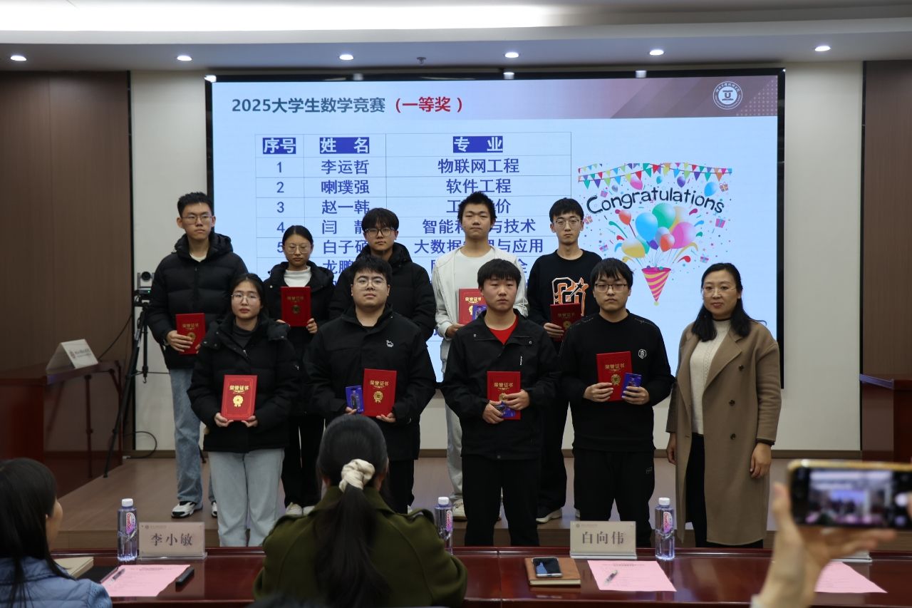 此次两项竞赛共表彰73人,这不仅是对学生学术能力与竞赛成果的集中检阅,更是学院深化教育教学改革的重要举措。颁奖典礼的成功举行,有效激发了广大学子探索数学奥秘、投身科学实践的热情,营造了崇尚科学、敢于创新的良好学风。学院将以此次活动为契机,持续优化竞赛组织与人才培养机制,强化基础学科教学支撑作用,为培养更多具有扎实学识、创新精神和实践能力的高素质应用型人才奠定坚实基础,奋力谱写学院高质量内涵式发展新篇章。